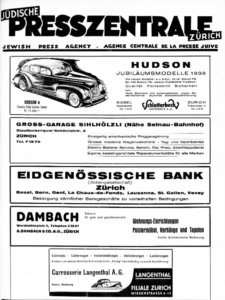 Die Werbung stammt aus der Zeitschrift „Jüdische Pressezentrale“ aus dem Jahre 1939.