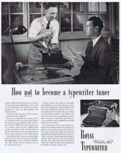 Obwohl die Schreibmaschine Royal KMM (Magic Margin) auch «Magic Margin Men» genannt wurde und vor allem durch den Tabulator als Neuauflage der Schreibmaschine galt, sind auch in dessen Anleitung Stereotypische Bilder zu finden: