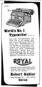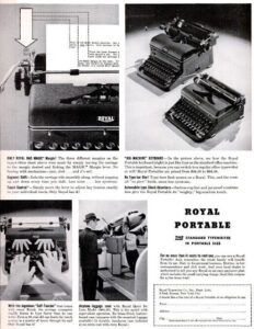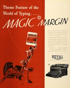 Diese Schreibmaschine entspricht dem Modell «Magic Margin», auch KMM genannt. Sie wurde um die 1940er Jahre von der Royal Typewriter Company angefertigt.