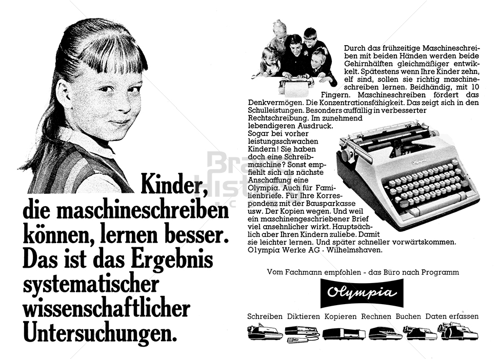 - Werbung Kinder: https://brand-history.com/olympia-business-systems-vertriebs-gmbh/olympia-buromaschinenwerke/olympia-kinder-die-maschineschreiben-konnen-lernen-besser